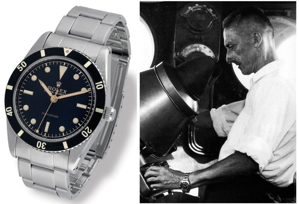 That’s when the company recruited Auguste Piccard, the Swiss physicist and explorer. In 1953, Piccard, in his Bathyscaphe deep-diving submarine, went down over 3100 meters in the ocean, and a specially-created Rolex Submariner descended with him attached to the ship’s hull. When the Bathyscape came out of the water, the Rolex watch was still working properly. It’s also interesting to note that 7 years later in 1960, Auguste’s son Jacques Piccard and Don Walsh of the US Navy, took the Rolex Deep Sea with them as they explored the lowest point on the Earth in the Mariana Trench – but it was the Rolex Submariner that first established the connection between the company and the Piccards’ explorations.