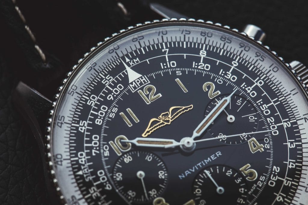Breitling also released one of their most notable models in 1952. The Navitimer, also known as the “super” chronograph, is equipped with advanced “navigation computer” functionality. This allows the watch to perform calculations needed for a flight plan. The brand continued their work on the chronograph function into the late 1960’s with the invention of the self-winding chronograph movement. They developed this revolutionary horological innovation in 1969 with the watchmakers Heuer, Buren, and Dubois-Depraz as part of a secret and unusual partnership dubbed “Project 99.” Then, in 1984, Breitling debuted another one of their more iconic models: the Chronomat.