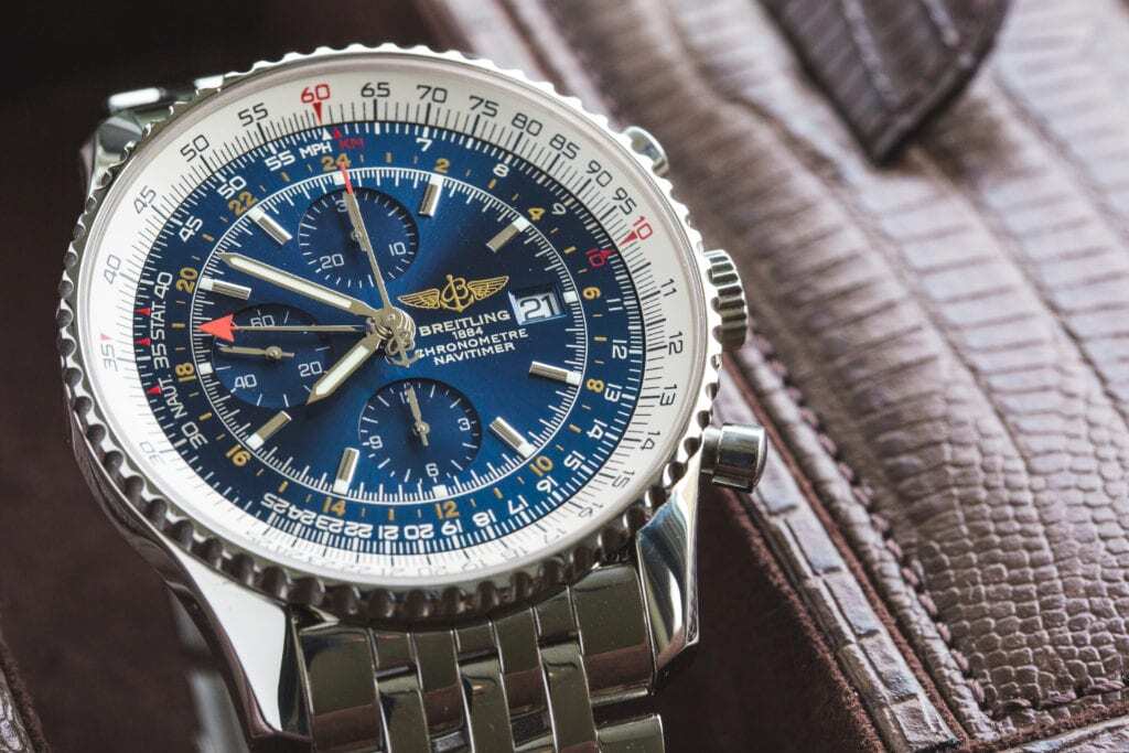 The slide rule is quite possibly the most intimidating of all the bezels. This complex tool is comprised of an inner and outer bezel. It allows you to perform an array of calculations, like speed, distance, and flight time. One of the first models to feature the slide rule was the Breitling Navitimer. Early slide rule bezels were optimized for pilots and featured three important units: KM (kilometers), NAUT (nautical miles), and STAT (standard mileage). With modern flight tools, the need for the slide rule bezel is becoming more and more obsolete.