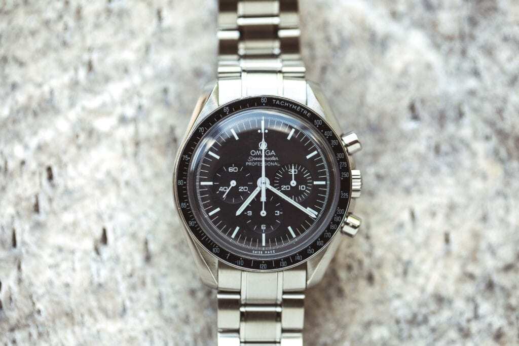 A tachymeter is another common type of bezel. It allows you to measure the speed based on the amount of time traveled at a given distance. In short, it helps you calculate speed over a fixed distance or units per hour. While a number of the other bezels we’ve discussed rotate, a tachymeter is fixed. Similar to the pulsometer, you use it in conjunction with a chronograph. This allows you to convert elapsed time in seconds to speed for events lasting up to 60 seconds. Here’s an example of how to use a tachymeter. Say you’re measuring a car’s speed in a race that’s one kilometer. Engage the chronograph once the car crosses the starting line. Then, stop the chronograph when the car completes the one-kilometer lap. Finally, read the mark on the bezel that lines up with the chronograph seconds hand to obtain the car’s speed. The first watch to feature a tachymeter scale on the bezel instead of the dial was none other than the Omega Speedmaster.