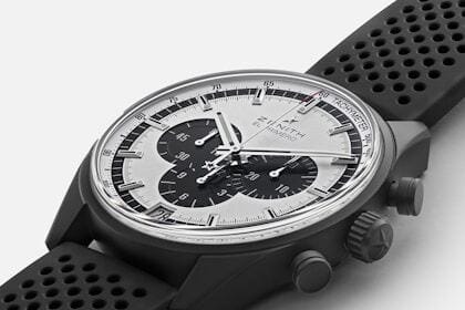 When it comes to famous chronograph movements, there may be no name that looms larger in horology than the El Primero. Not only was the appropriately named caliber the first automatic chronograph, it was also the first to be fully integrated. The El Primero has proven remarkably resilient since it first appeared in 1969 – there’s a reason Rolex tapped it to power the Daytona for so many years. In the El Primero 36,000 VpH, this masterpiece of late ’60s engineering has been paired with some decidedly modern attributes. Most obviously, it is housed in a lightweight ceramized aluminum case, which blends the light weight of aluminum with scratch resistance more commonly associated with ceramic. We’re pleased to offer this watch in two stunning, all-black executions: a panda dial and an equally appealing reverse panda.