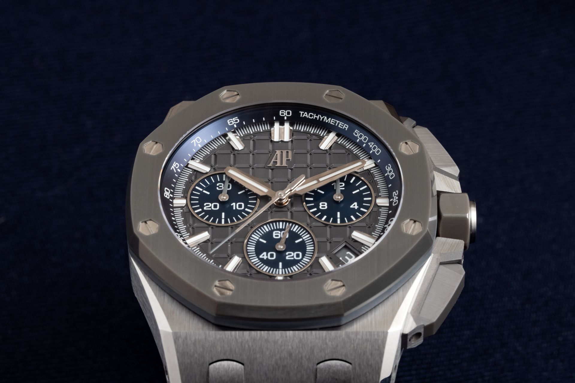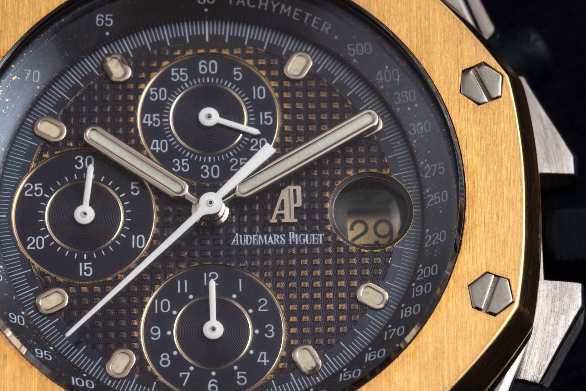 Seen next to one of the models from the 1990s – in this case, the reference 25721SA, from 1999 – the changes to the design are immediately obvious. In addition to the changes in the dial layout, the modern 43mm version has more rectilinear pushers and maybe most notably, no cyclops for the date window (although the placement of the window at 4:30 just goes to show that the Offshore is as ready for controversy as ever).