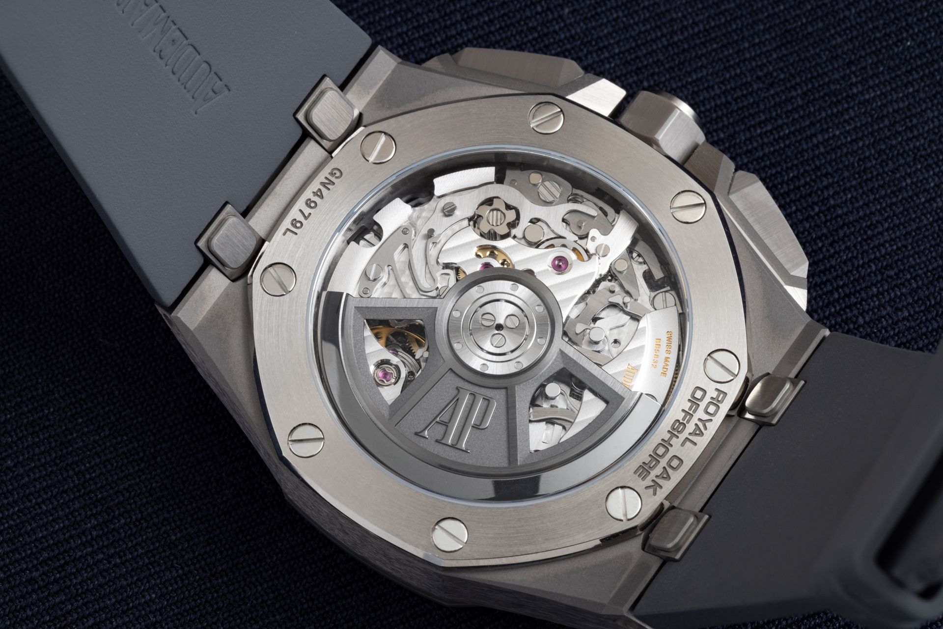 One thing, however, that the Offshore has never had – and this may come as a surprise to those somewhat new to fine watchmaking, or just getting acquainted with Audemars Piguet – is an in-house movement. The Offshore has instead, generally relied on base calibers, with chronograph modules added. The first models used automatic base calibers from Jaeger-LeCoultre (the caliber 888 and 889/1) and more recently, the 3126/3840, which is AP’s own in-house caliber 3126 but again, with a chronograph module. AP has also used the F. Piguet caliber 1185 (which is now the Blancpain 1185, as F. Piguet has been incorporated into Blancpain), which is an integrated, ultra-thin chronograph movement, but again, not in-house.