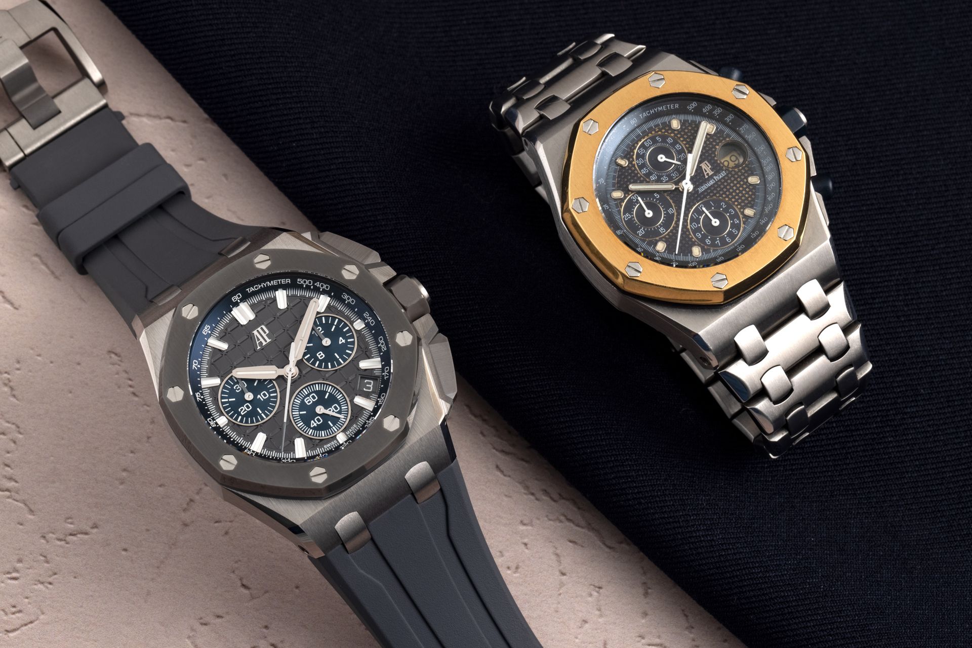 The 43mm 26420SO.OO.A002CA.01, seen next to the extremely rare 1999 reference, 25721SA.