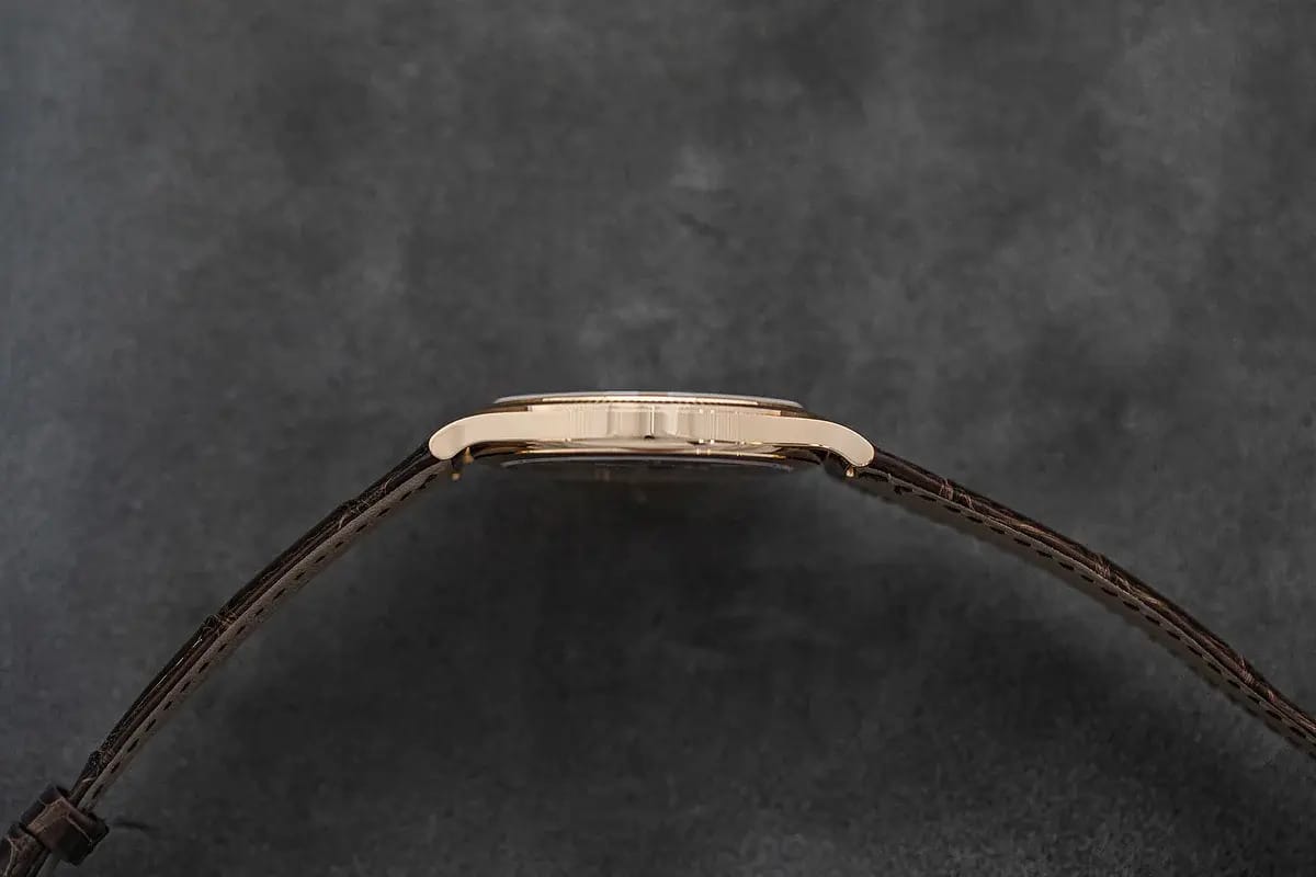 And finally, let’s talk about my impression on the wrist. With a larger movement, the case size has increased to 39mm, but the total height from the top of the crystal to the bottom of the caseback is just 8.08mm. That is a touch taller than the 5196, but you could say it’s a large and thin watch. The wide (for a dress watch) 21mm lug spacing is quintessentially Calatrava, and the watch provides a great stability on the wrist thanks to its proportion. This may sound cliché, but the watch is very light and comfortable. With the highly ornate Clous de Paris bezel and three-dimensional hands, the new Calatrava gives a bolder impression compared to its predecessor. Thanks to that, I think the 6119 has gained a quality that invites you to wear it daily, which is a departure from the decisively dressy 5196.