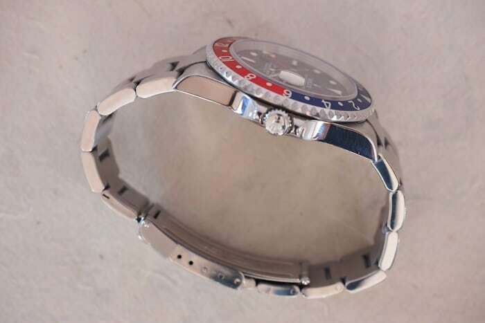 The Rolex GMT Master-II, with its so-called Pepsi bezel and an Oyster bracelet with the improved clasp.