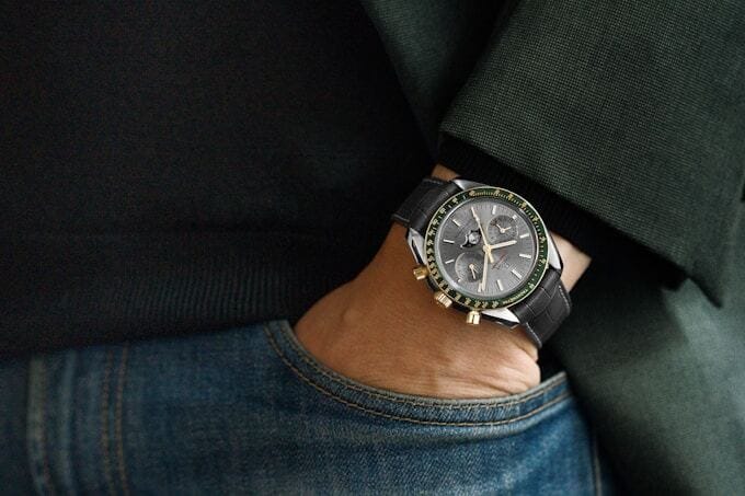OMEGA Speedmaster Moonphase Grey Dial With Green Bezel In Two Tone