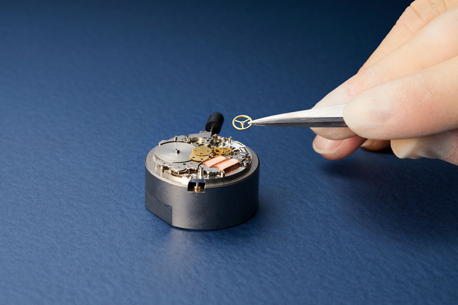 Assembly of the glide wheel into the 9R65 Spring Drive caliber.