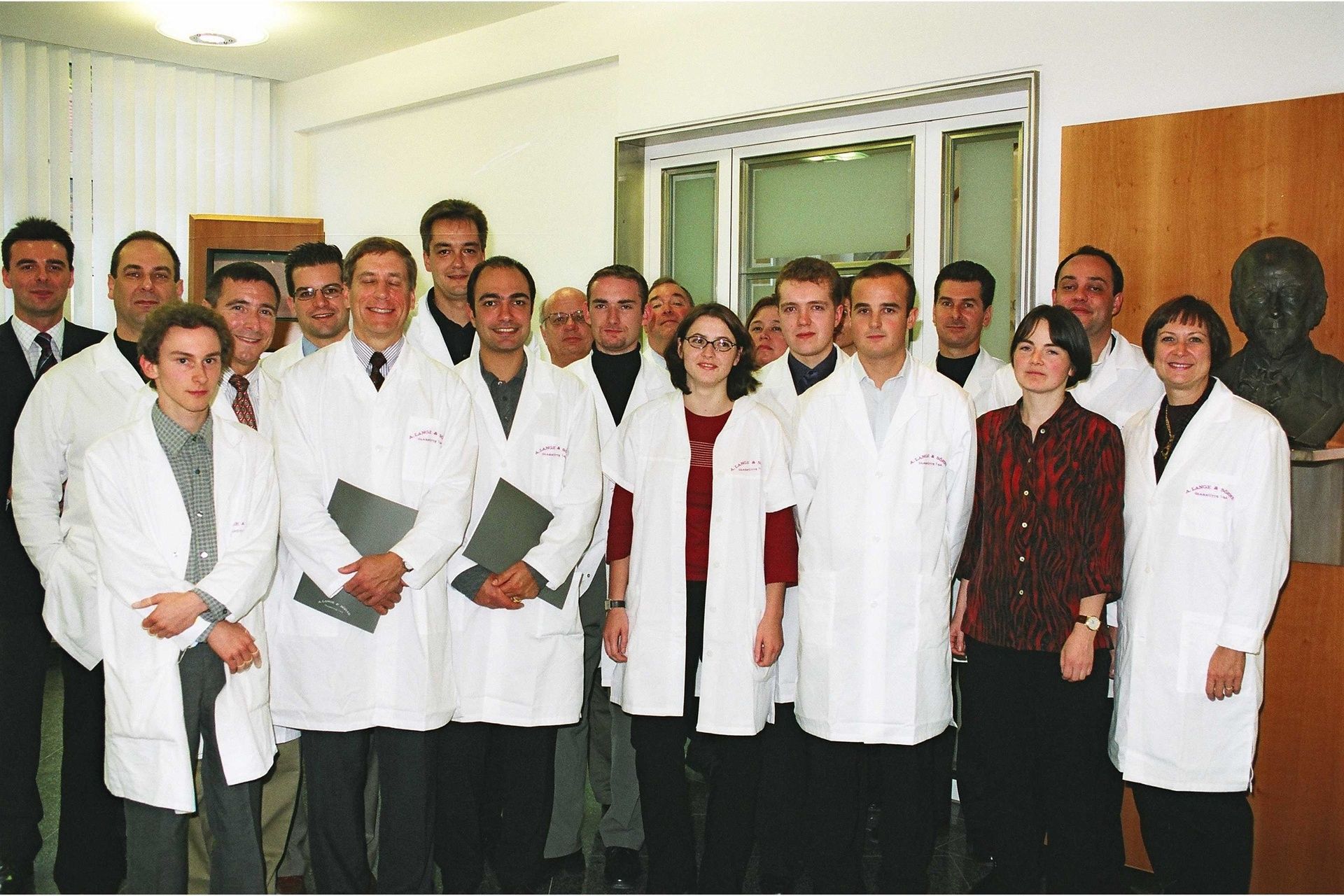 The first press trip to the Lange manufacturing facilities in 2001. All attendees ended up purchasing a Datograph. William Massena, interviewed for this story, stands behind Annegret Fleischer, the woman in the red and black blouse second from right in the front row.