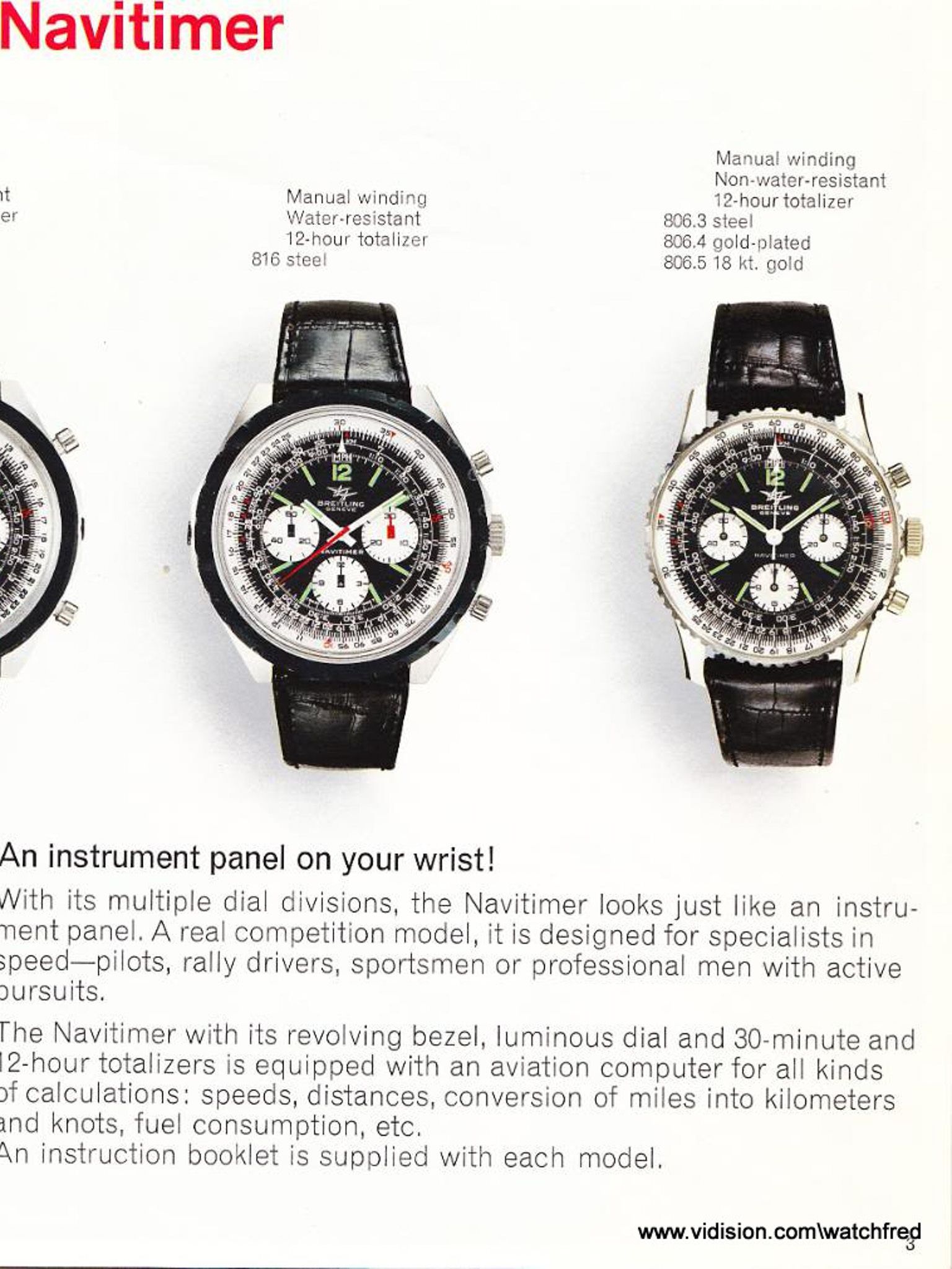 Two vintage Breitling catalogs: In Switzerland, the Navitimer was reference 806.