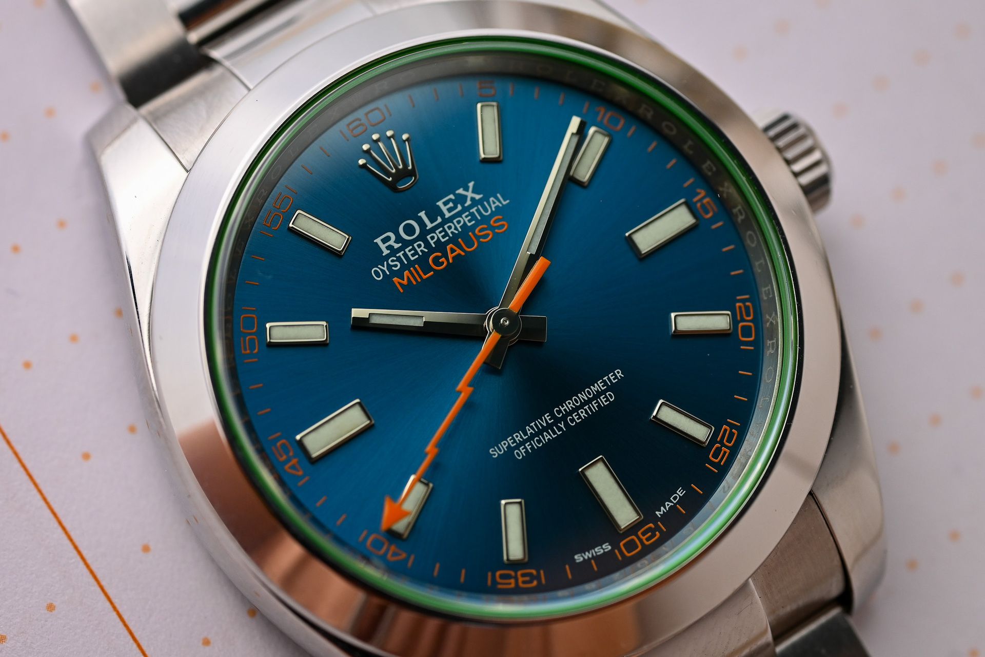 You can find all kinds of opinions on the best modern Milgauss: Danny likes the black dial GV, while others have argued for the white dial or the Z-Blue GV. I can confirm Z-Blue is the correct answer, backed up by not only by my own exquisite taste, but also by a very unscientific Instagram poll (55 percent voting Z-Blue over white or black) and my friends in the Hodinkee Shop, who seem to consistently price the Z-Blue version higher than the others.
