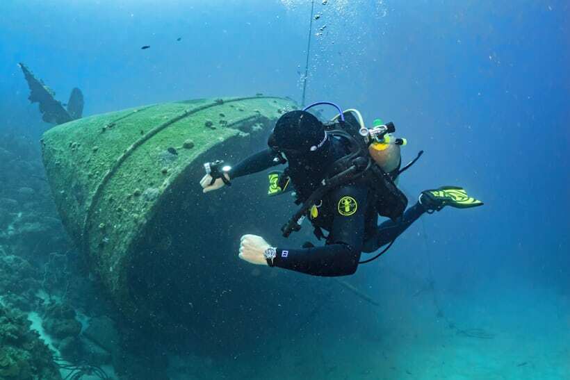 The author, searching for sunken nukes (or just pretending to), wearing an Omega Seamaster Professional 300M.
