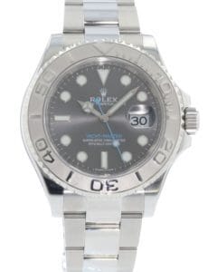 The Yacht-Master is one of the most recent additions to the Rolex lineup. This particular variation first debuted in 1999 as the brand’s first stainless steel and platinum iteration, a combination called Rolesium. It also features a contrast dark Rhodium dial, giving this watch a distinct look and maximum legibility.