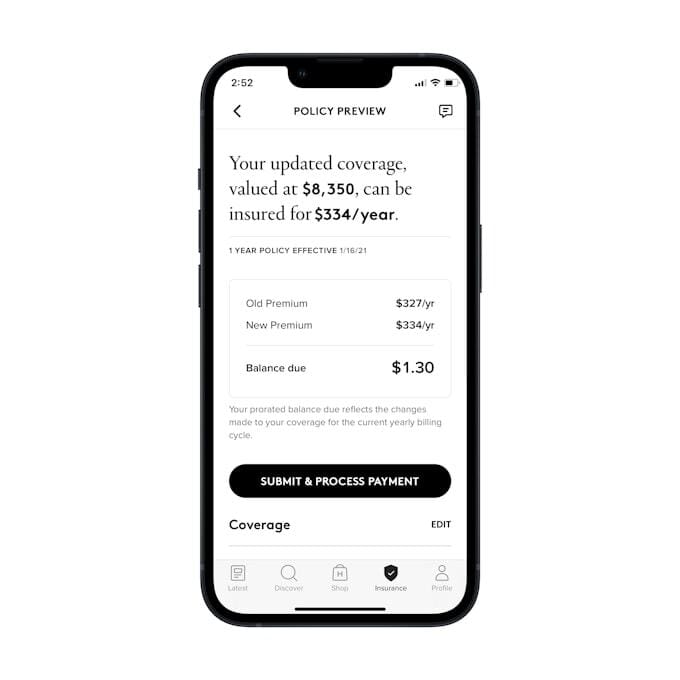 When you “Add A Watch,” all we need is a photo of the watch (max file size: 5 mb), the make and model (specific reference and serial numbers are not required, but definitely keep them handy), and its replacement value. Once you confirm the watch’s value, it will be pending addition until you click on “Request Quote” to see your updated premium and prorated balance due. Coverage is effective once you click on “Submit” to process payment. If approval is required, you will be notified.