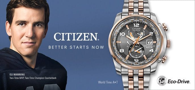 Football runs in Eli Manning’s blood. He’s the son of former NFL quarterback Archie Manning and the younger brother of former NFL quarterback Peyton Manning. He may have lacked the consistent performance of his brother. However, Manning always held his own in the game over the course of his sixteen year career. He earned the MVP award in each of his Super Bowl wins. This makes him one of only five players to have multiple Super Bowl MVP awards. Manning has also been an ambassador for Citizen for nearly ten years. He’s participated in the brand’s “Better starts now” campaign. In addition, he helped to design multiple special edition watches with the brand over the years. You can typically find him wearing one of the Citizen Eco Drive models.
