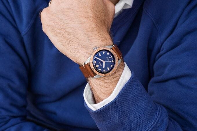 Oris introduced a curveball into the two-tone world with this iteration of its vintage-inspired Divers Sixty-Five. Gold is seldomly used by the Hölstein-based brand, so Oris decided to riff on the two-tone theme with a combination of stainless steel and bronze.
