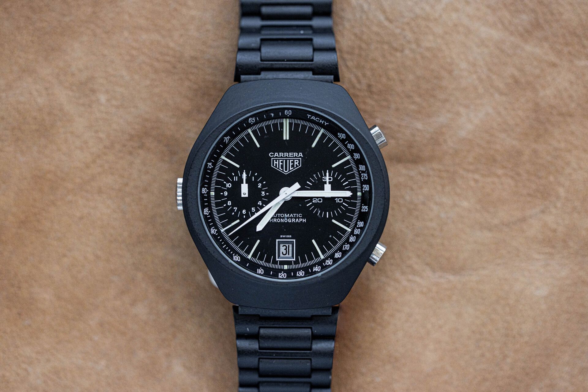 Even with these Lemania-powered Carreras, we see Heuer continue to experimenting with black-coated cases.