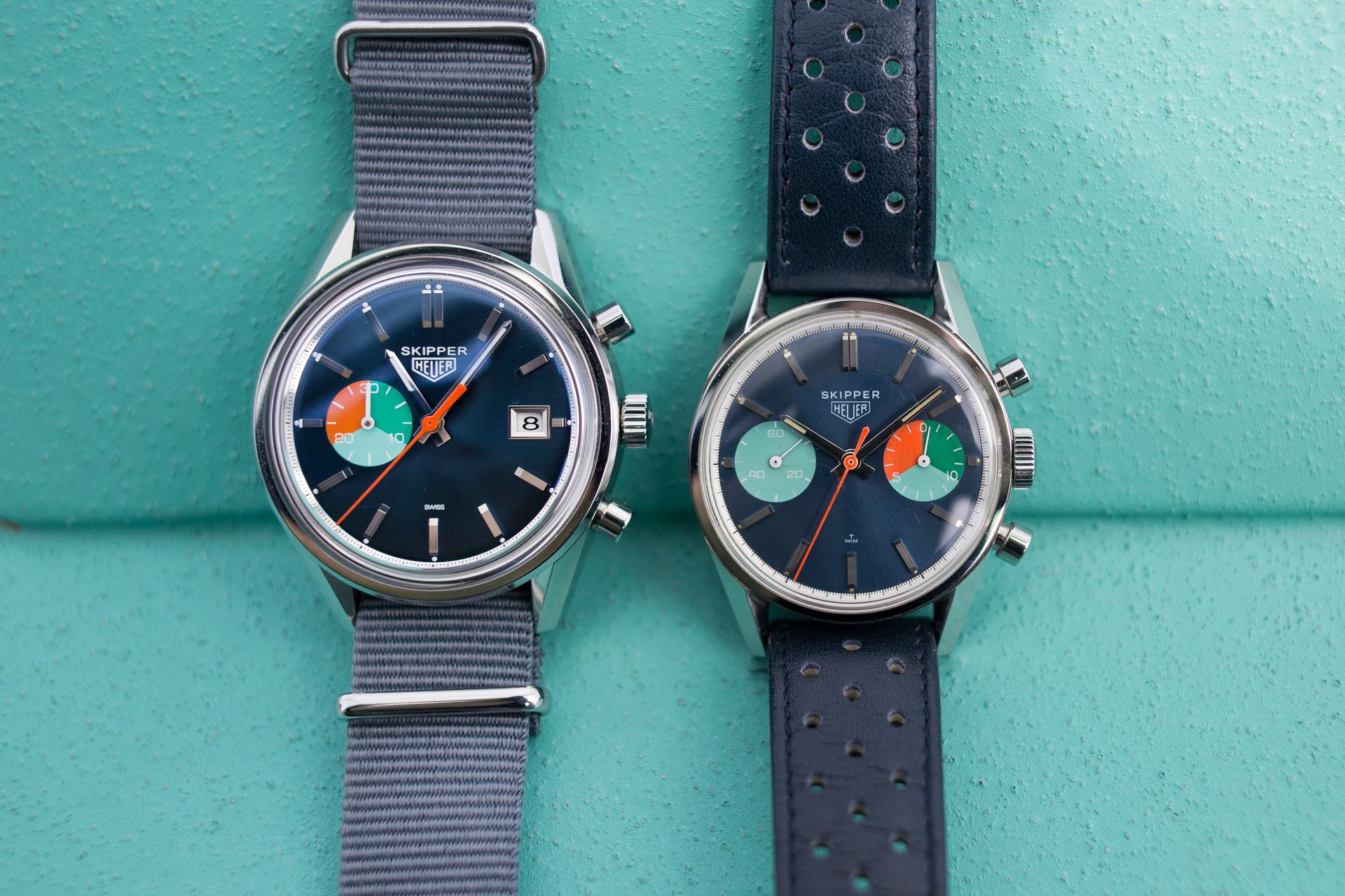 Hodinkee LE Skipper (left), Original Heuer Skipper (right)