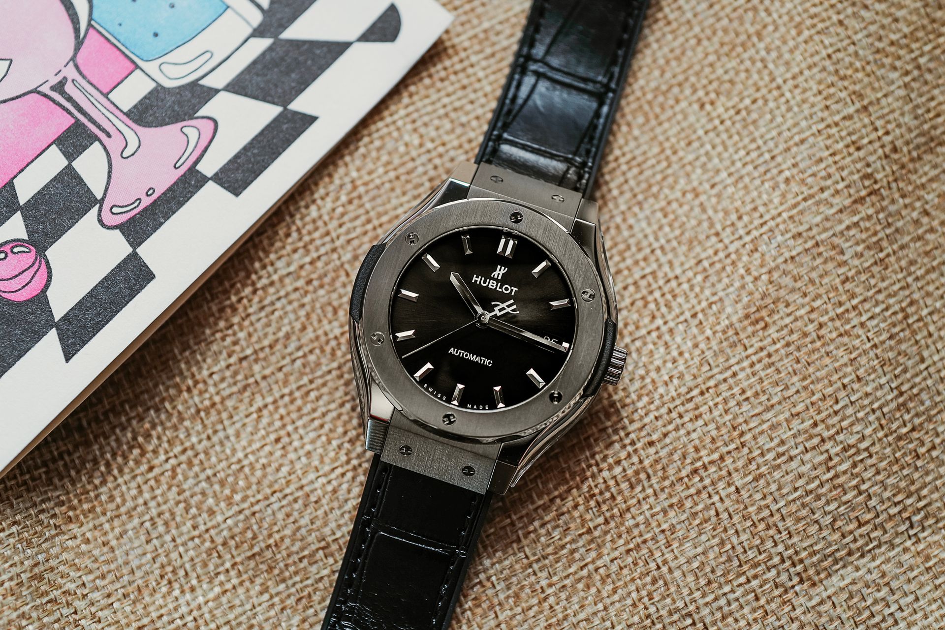 In a recent episode of Hey, HODINKEE, I railed against watches with no minute track because I find them impossible to set unless you’re trying to set the watch on the hour, or every five minutes. Now, I’ll admit, my rant was more focused on watches like vintage Onyx dial Rolex Day-Dates where there are literally no markers. And while I wish there were minute markers on this Hublot, I can live with it here because this watch is more about style than it is anything else.