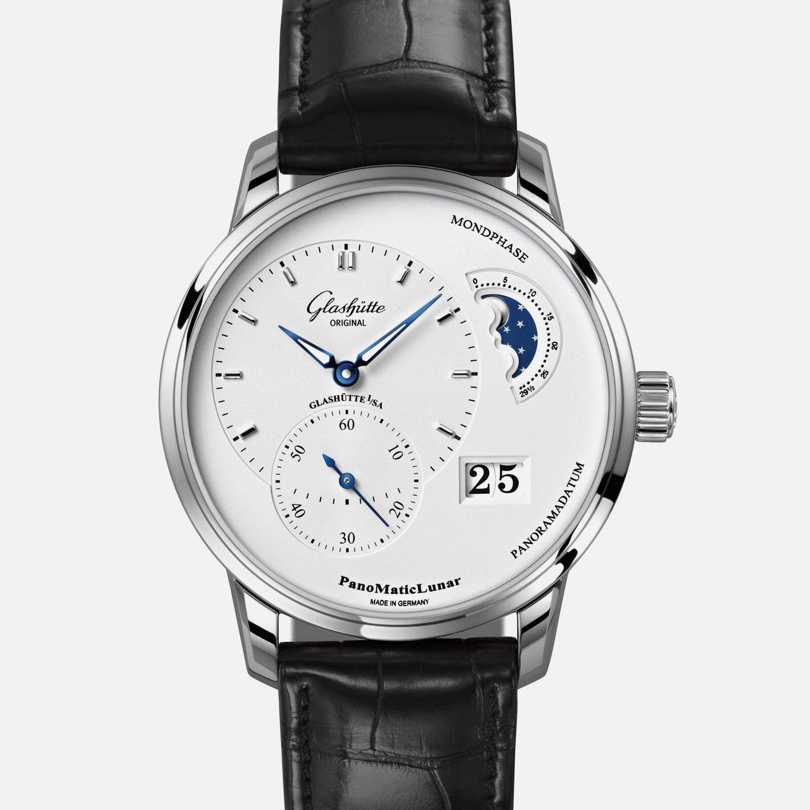 Watches like the PanoMaticLunar ref. 1-90-02-42-32-05 that we photographed for this story, with its asymmetric timekeeping displays and big-screen Panorama Date indication, are exactly what comes to mind when I think of the post-2000, Swatch Group-era of watchmaking at Glashütte Original.