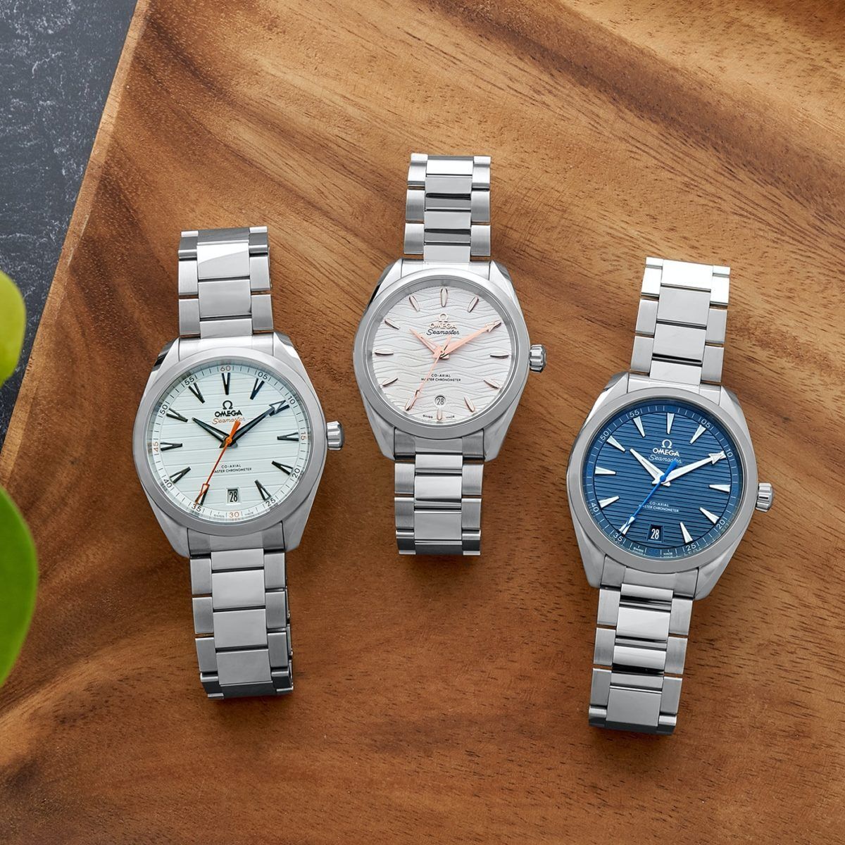 The Aqua Terra line has been gradually refined and upgraded over the last 18 years, and it’s now fair to describe it as one of OMEGA’s most diverse collections. While the large number of variants that comprise it today differ in appearance, size, and the movement inside, they all remain at the halfway point between sporty and dressy design, with the straightforward functionality to be an ideal daily wear option. We’ve gathered seven of our favorite Aqua Terra models from OMEGA’s current line-up to add to the HODINKEE Shop today, and though a few of these are simply new color variants of the Aqua Terra design language you know quite well, others highlight the Aqua Terra profile with different dial finishes and the use of premium materials.