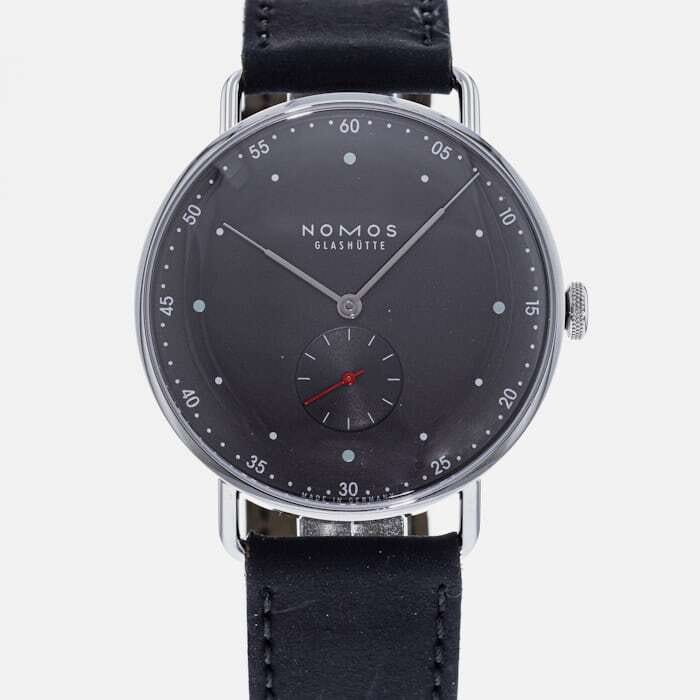 The Metro breaks down the minimalist NOMOS aesthetic down to its bare essentials. The watch, brought to life by industrial designer Mark Braun, dispenses with a power reserve display or date window in favor of beautiful simplicity. Its 38mm stainless steel sits nicely on the wrist and the dial’s “urban grey” color is achieved with a ruthenium coating.