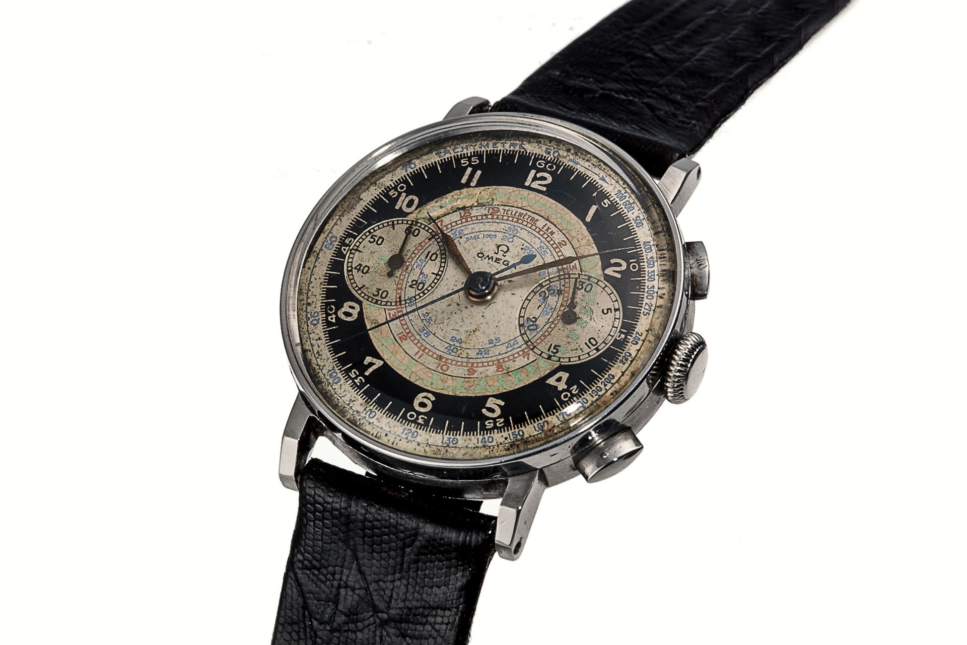 But that’s not all. Even rarer still is the Telemeter Speedmaster. We’ve seen examples in the 145022-69 ST reference, which basically swaps the tachy for the tely – a scale developed as a means to measure the distance of an object. The most practical use case for the telemetry scale was for soldiers to discern how far away the enemy was by using the scale to time artillery shell fire. In practice, this meant engaging the chronograph when artillery was fired and stopping when it landed. This is pretty limited in practice these days (Omega suggests you might use it to time lighting …), and you’ll only find Speedmasters of the vintage variety with these markings on the bezel.