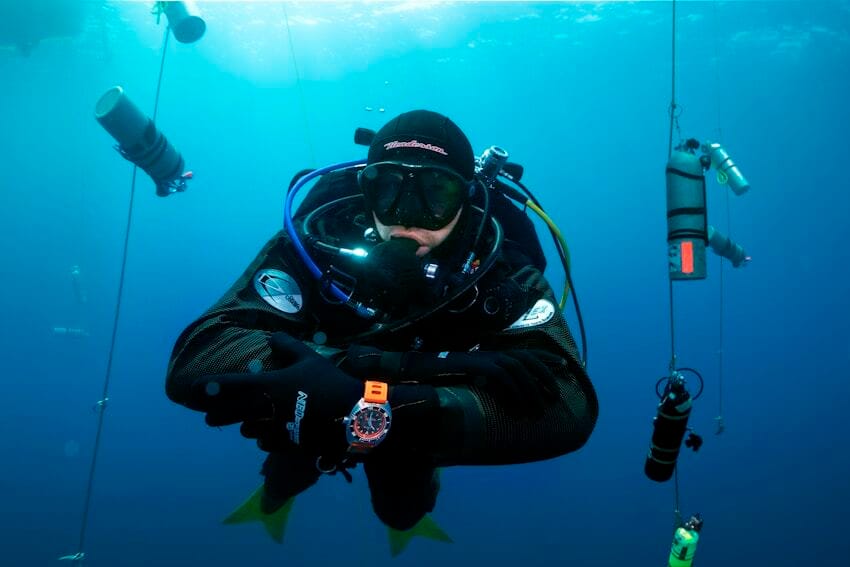 We’ve seen watches with some truly wild water resistance, even capable of surviving a trip to the bottom of the ocean. The truth is, those sort of depths are not required for a dive watch to be sufficient for most diving. The average diver is certified to dive no deeper than 130 ft (40m), with only the most advanced and training intensive types of diving venturing any deeper. So while yes, the 300m/1,000 ft water resistance offered by a watch like the Rolex Submariner might have been challenged by the 322.35m (1,090 ft) achieved by the current world record SCUBA dive, the average 100m to 200m resistance often offered by most dive watches is more than enough for the shower, the pool, and even your Advanced Open Water PADI certification. ISO 6425 compliant dive watches are resistant to at least 100m and have to be tested to 125% of the claimed value. Anything much over 100m is extra and very rarely required by sport diving.