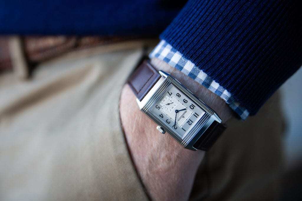 Both watches are truly elegant in design. The Cartier offers a classic approach to a dress watch, while the JLC does so, with a twist. Again, this area comes down to your taste, budget, and overall collection. For those who travel, the Reverso offers the ability to flip (literally) between tracking two time zones. When it comes to those with less robust timekeeping needs, the Tank offers everything you need. I typically shy away from the majority of quartz watches. However, the Tank with a quartz movement offers a grab-and-go element the Reverso cannot. No need to wind, simply throw it on your wrist until it’s time to change the battery. For those with smaller wrists, the Tank offers a far more flat profile. It comes in at 5.5mm thick while the Reverso is almost twice as large at 10mm. Though 10-14mm thick is fairly standard for circular watches, it’s worth noting this wears more substantially in a square case.