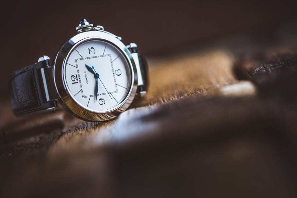Lozenge hands are somewhat similar to sword-shaped hands. However, they’re a bit more symmetrical and elegant. They feature an elongated diamond-like shape that extends for the full length of the watch hands. The surface area provides a perfect opportunity for watchmakers to apply lume, if desired. Models like the Pasha de Cartier showcase this sophisticated design.
