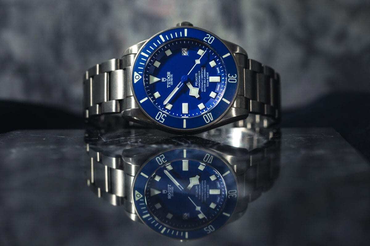 Similar to Breguet hands, snowflake hands are specific to one watch brand: Tudor. The brand developed the design for the French Navy. They were looking for something to make their dive watches highly legible, and the snowflake hands were born. The result was a set of incredibly unique, oversized hands. Most notably, the hour hand features a distinctive square pattern at the tip. These robust hands are hefty enough for a good coat of lume for maximum visibility. You can find them on models like the Pelagos.
