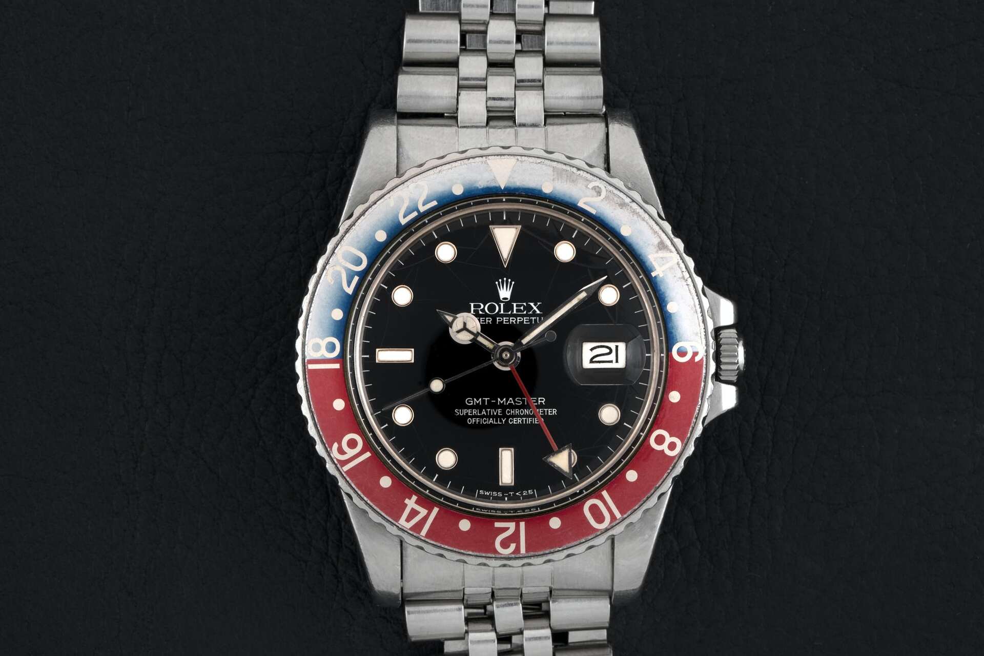 Around 1984, just prior to the introduction of sapphire crystals in their bread-and-butter entry-level sports models – the ref. 5513 “no-date” Submariner and the ref. 16750 GMT-Master – Rolex introduced an important dial change that has lasted to the present day. After 18 years, Rolex switched from the matte dials used since 1967 to vibrant glossy, lacquered dials with white gold, luminous hour markers. These still vintage, acrylic-crystal models were both discontinued and replaced with sapphire crystal versions: The ref. 16700 GMT-Master launched in 1988 replaced the 16750, and the ref. 14060 Submariner (now water resistant to 1,000 ft/330 m) replaced the 5513 in 1990.