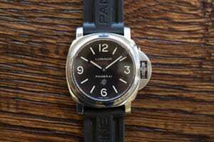 The Panerai Luminor Base – 44 millimeter. Staying with larger watches, let’s take a look at this Panerai. When we think Panerai we think Luminor. With the iconic crown guard, unique case shape, and intense loom you can’t go wrong. And with plenty of options between dial variations and straps anyone can fit their needs. We love this PAM 112 because if it’s clean, symmetrical, sandwich dial, and exhibition case back. And Panerai manual wound movements are a sight to look at.