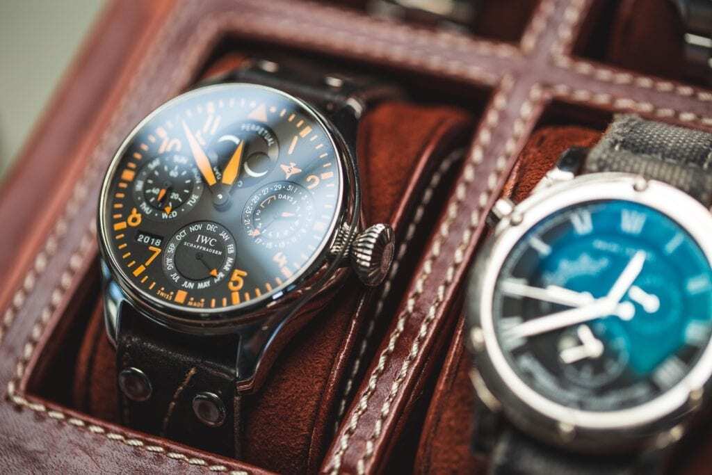 His collection doesn’t end there. In the box are various Seiko’s and Rolex, as well as an IWC Perpetual Calendar. He is intrigued by the “crazy math machine” inside that watch that will track days, weeks, and years long after we are gone. This is why he doesn’t care for smartwatches, quartz, or things of that nature. To him, they are fleeting, and the machines inside don’t compare to the powerful mechanical pieces.