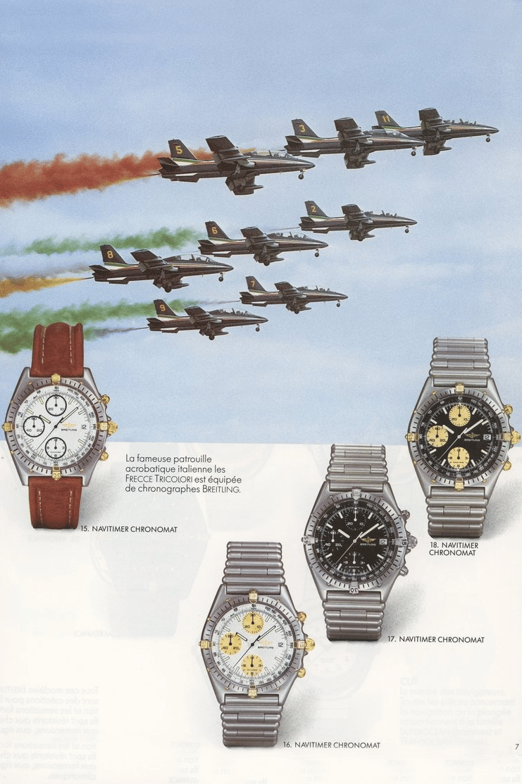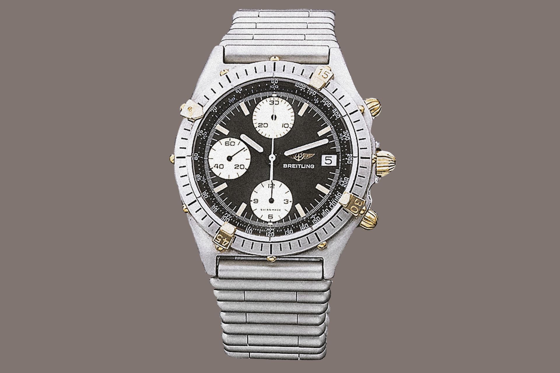 The 39mm Chronomat was released in 1984, the culmination of years of work by then Breitling head Ernest Schneider, who had originally developed the watch under a different name – The Chronograph “Frecce Tricolori” – for the eponymous Italian Frecce Tricolori Jet team (that watch was launched in 1983). The recessed crystal and the bezel with protective rider tabs became design staples of the Valjoux 7750-powered Chronomat. In many ways, Schneider made it one of the key watches of the ’80s – but Seinfeld made it the watch of the ’90s.