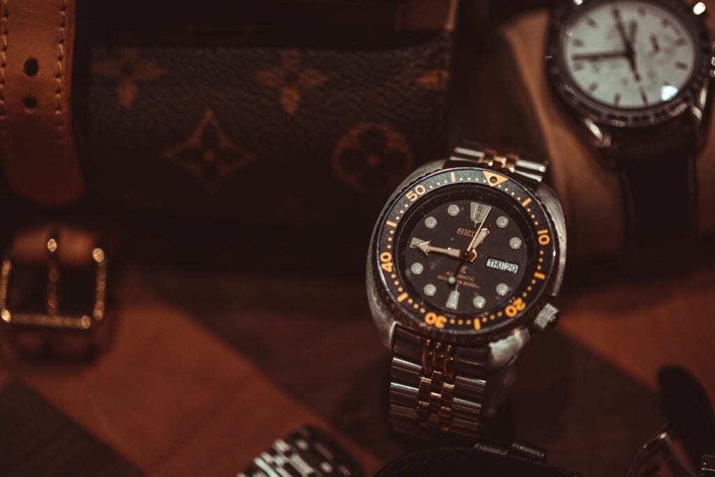 The first watch was his favorite, a Seiko Turtle. It was the reissue and features a black bezel with gold numbers. He put a Strapco two-tone jubilee on it that sets off the case and colors. He told us “from thirty feet away it looks like an old Rolex” and when people thought it was one, he didn’t correct them.