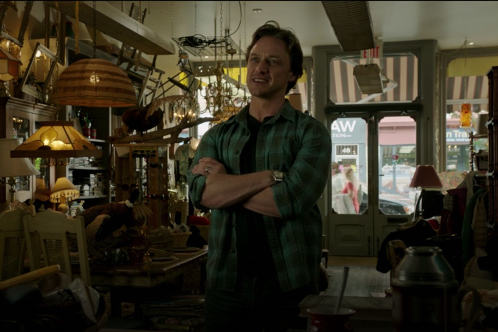 About midway through the film, Denbrough (McAvoy) finds himself strolling the streets of Derry when he happens upon an old vintage shop – no, not a vintage watch shop. He stops cold in his tracks by the window of the store when he sees an old bicycle on display – one that once belonged to him. He enters the store and is immediately greeted by the owner, played by none other than Stephen King himself. Denbrough, who suffers from speech impediment that causes him to stutter, struggles to get the word bicycle out of his mouth and uses a certain expletive that begins with an “F” to aid himself in doing so. As he walks closer and closer to the store owner behind the counter [01:18:24], we can clearly see the light stainless steel of the recognizable jubilee bracelet glistening in the various pockets of dusty vintage light.