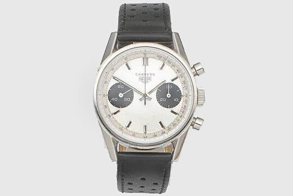 Similar Heuer Carrera ref. 7753 to the one worn by Matt Damon in Ford v Ferrari. Photo: Bonhams