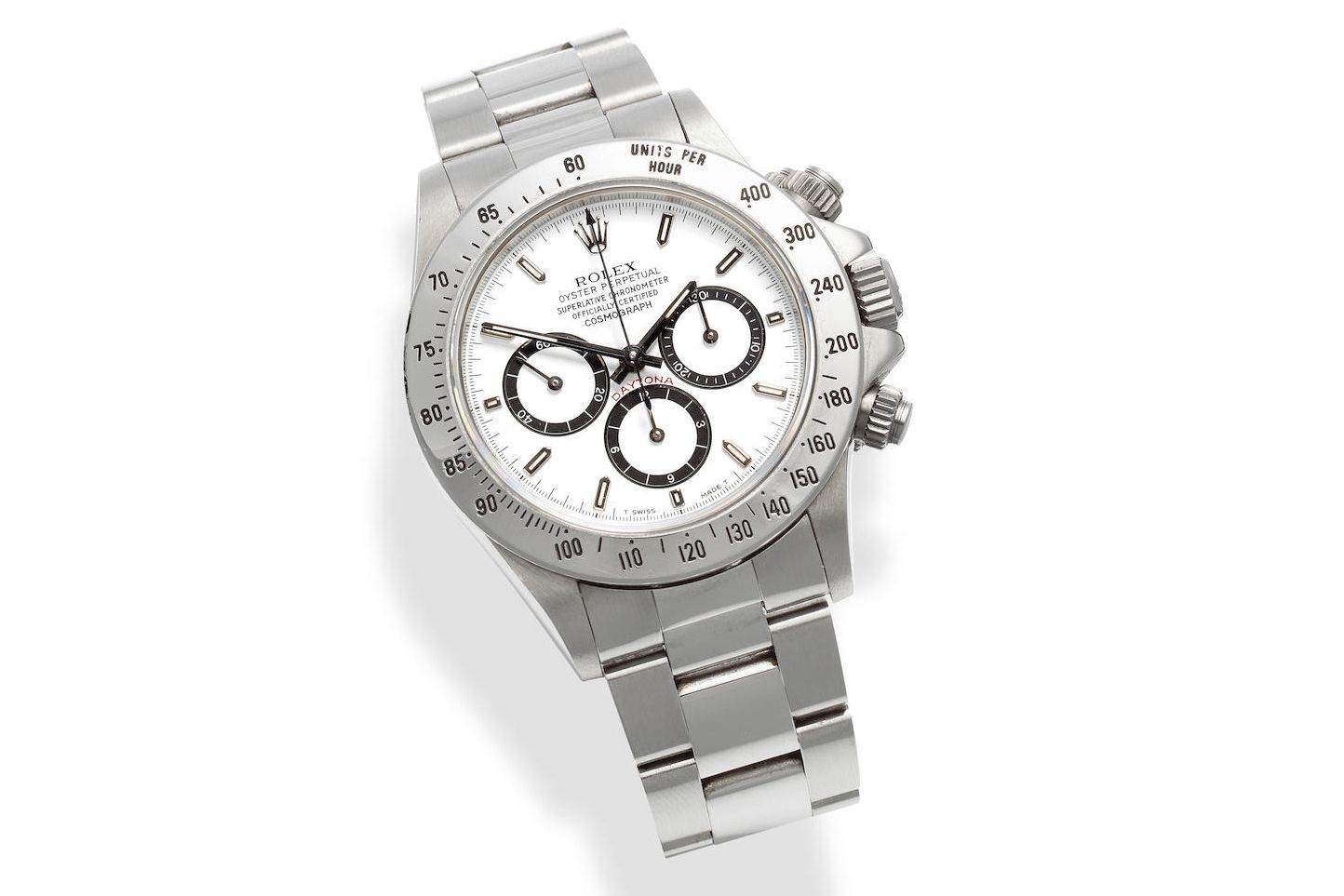 Similar white dial Rolex Daytona 16520 to the one worn by Tim Allen in Galaxy Quest. Photo, Christie’s