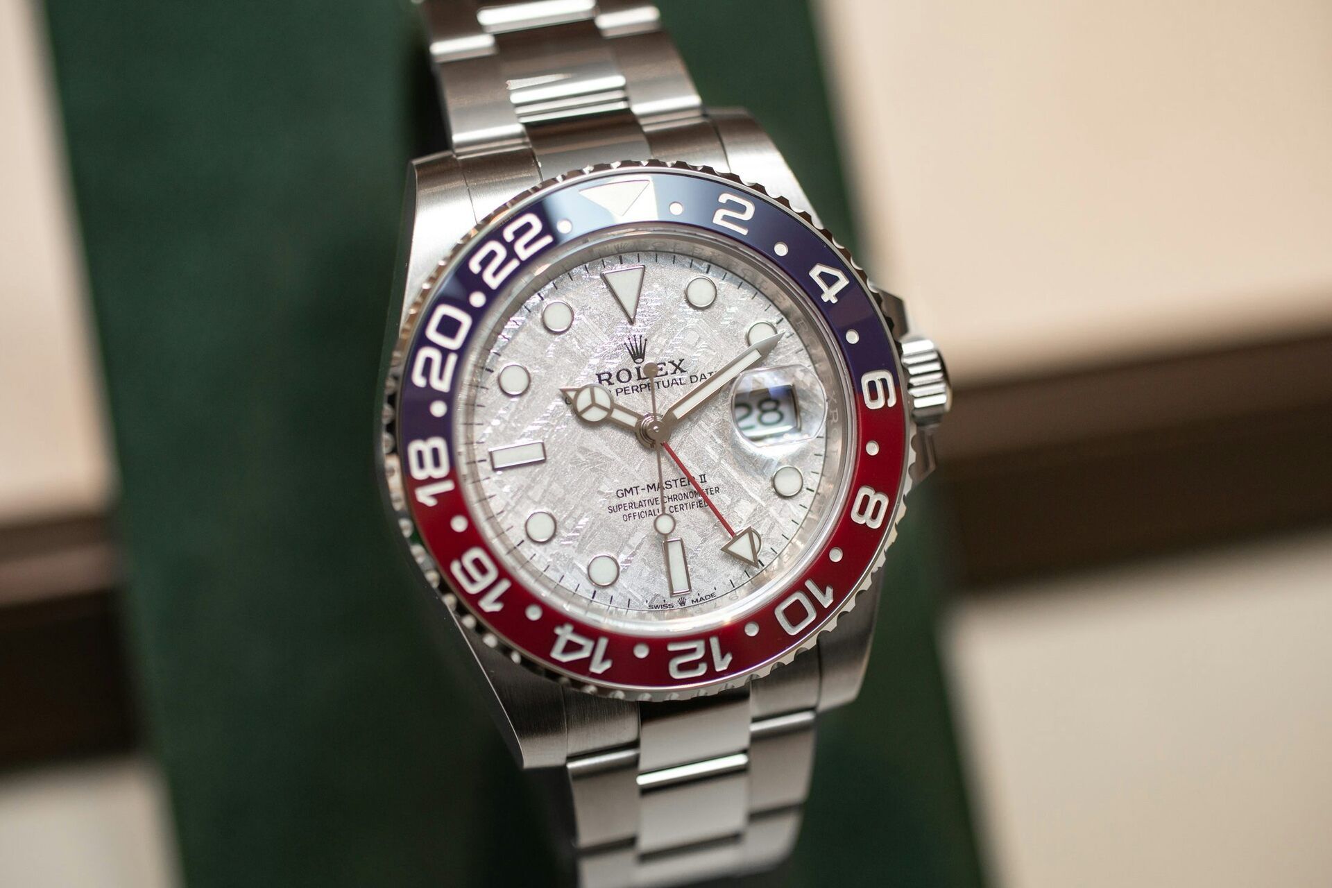 The Rolex GMT-Master II in white gold with meteorite dial, introduced in 2019.
