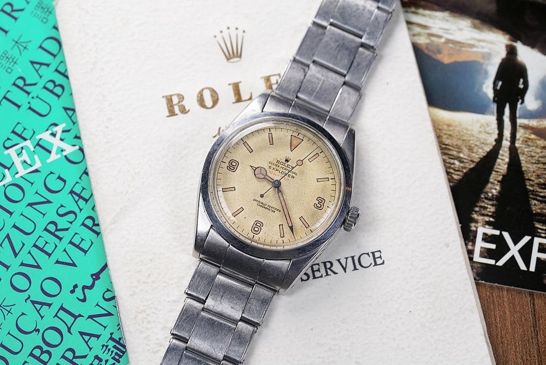 While the albino Explorer isn’t quite as mythical as the GMT-Master, it’s no less rare. It also happens to be my favorite of the bunch. Most of the albino Explorers you’ll see (which is to say: no more than a few) will be ref. 6610, produced in the ’50s before it gave way to the 1016. Only a few have appeared publicly, so here are a few notable examples: