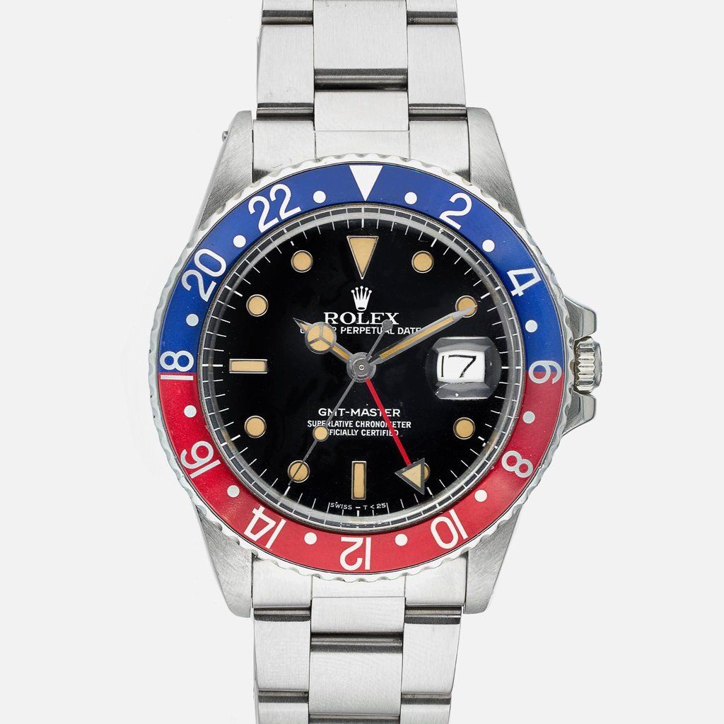 Rolex GMT Master 16750 with applied markers and white-gold surrounds.