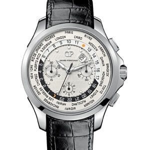At over 200 years old, Girard-Perregaux has mastered the art of fine watchmaking. The Girard-Perregaux WW.TC Traveller is a perfect example of the brand’s expertise and skill. In addition to displaying the time in all 24 time zones, the WW.TC Traveller has three subdials that display the seconds, minutes, and hours in the local timezone. It also has a day and night indicator, and date window, a chronograph function, and a 46-hour power reserve, all of which would be extremely useful for the frequent flyer.